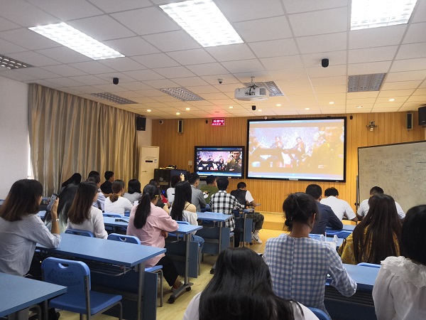 此次座谈会由我班团支部组织展开,团支书兰荣静在主持讲话中提到:当代老员工应明确自身使命、将老员工热烈的爱国情怀发扬光大。新时代面对新挑战,我们要用自己的实际行动,发展自我完善自我,为社会主义建设贡献力量。接着,同学们集体观看电影《建党大业》,观看电影的过程中,电影里那些声嘶力竭的号召,整齐有力的振臂高呼,无所畏惧的迈步向前透过屏幕、穿越时空,燃起荧幕这一边青年的激情。